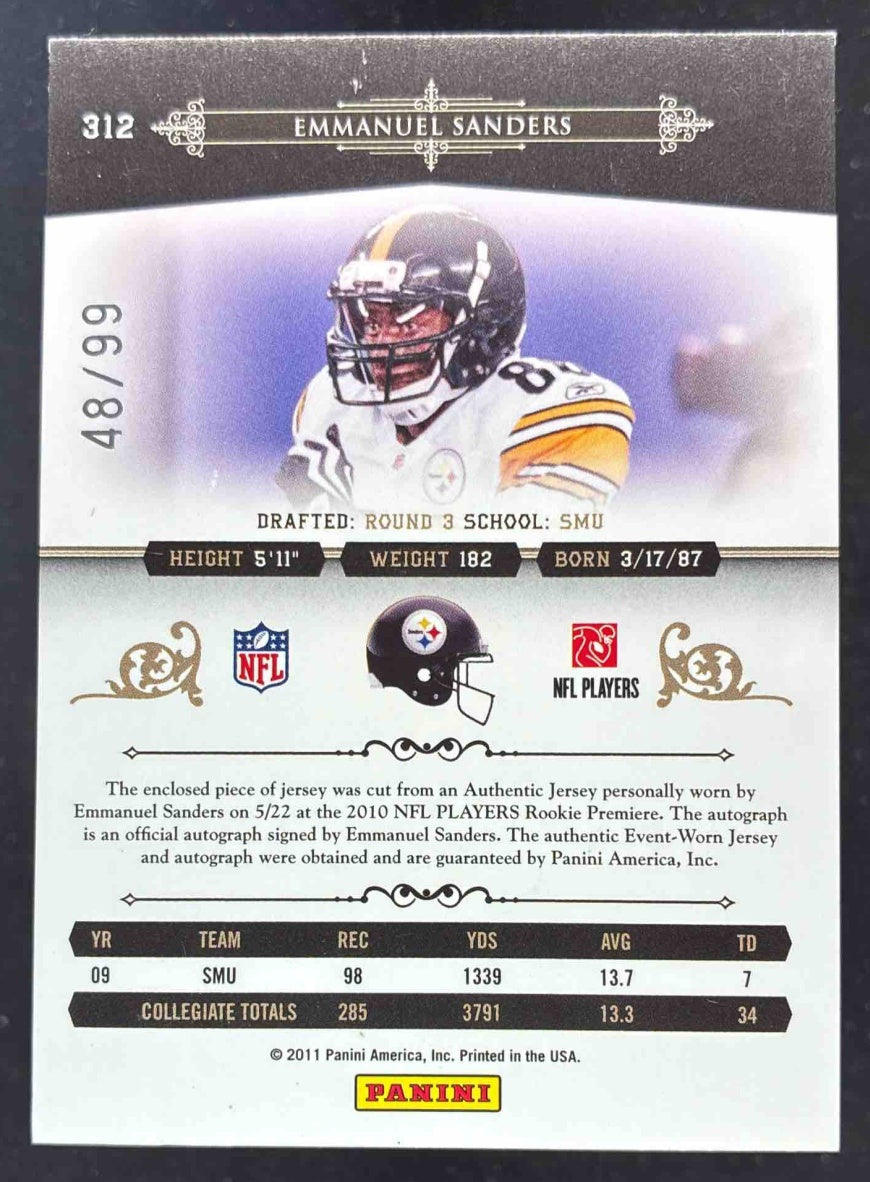 2010 Playoff National Treasures #312 Emmanuel Sanders Autograph RC Auto /99