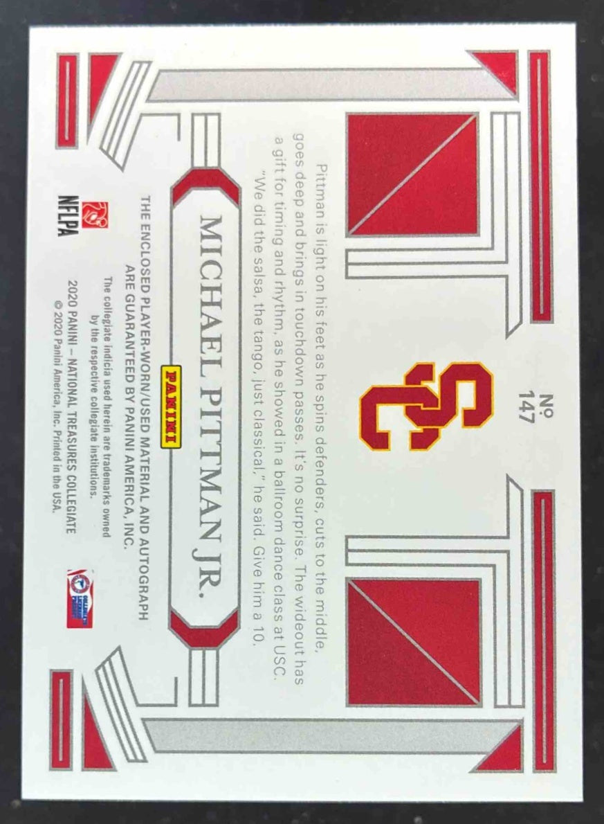 2020 National Treasures College Materials Auto Blue Michael Pittman Jr RC /49