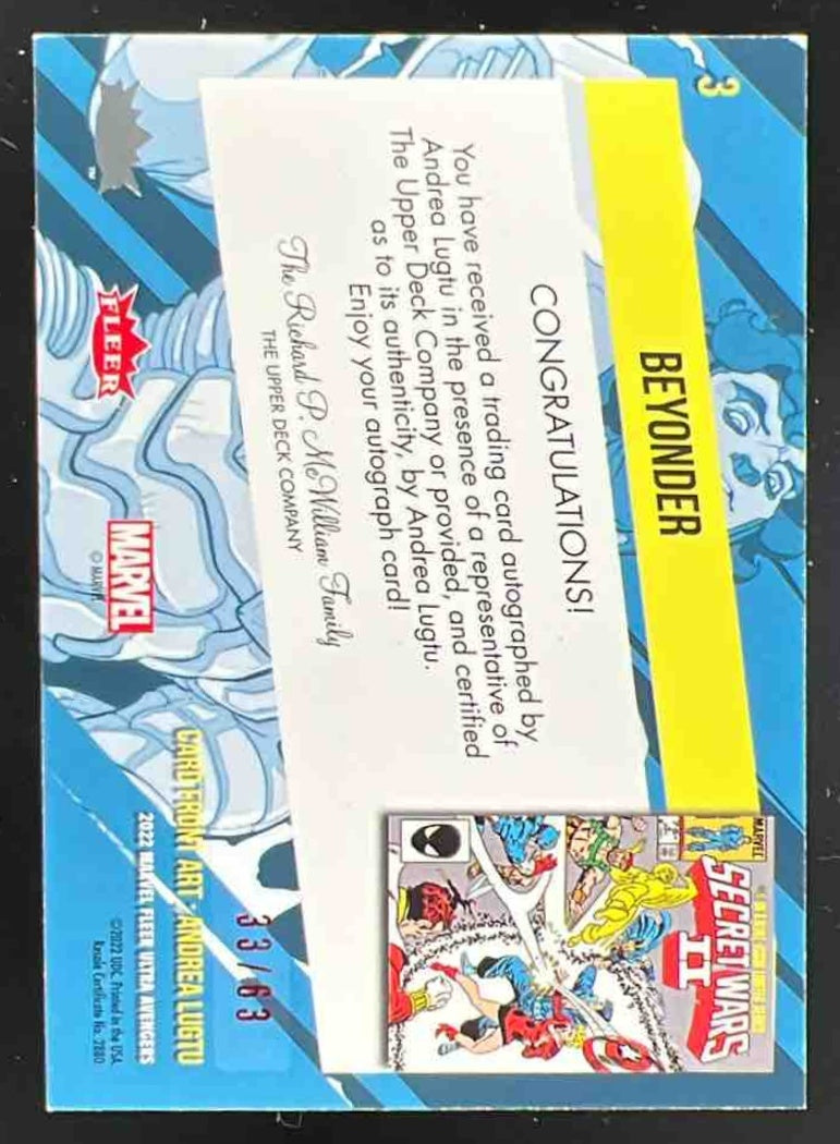 2022 Fleer Ultra Marvel Avengers Red Foil Artist #3 Beyonder Autograph Auto /63